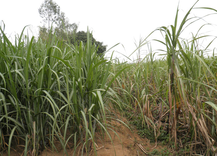 使用歐神產品的甘蔗地,葉綠長勢好。