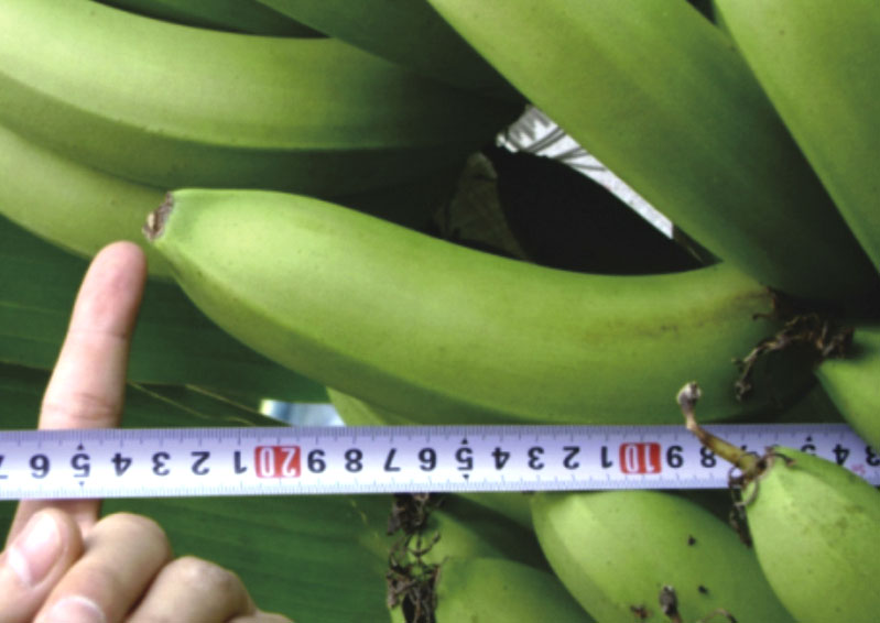 施用“歐神”鈣鎂硼鋅鐵后,香蕉無缺素癥狀,果指明顯的生長及伸長,大小、著色均勻。