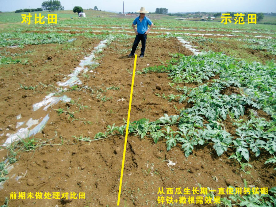 ● 歐神鈣鎂硼鋅鐵、歐神微根露在西瓜上的應用效果