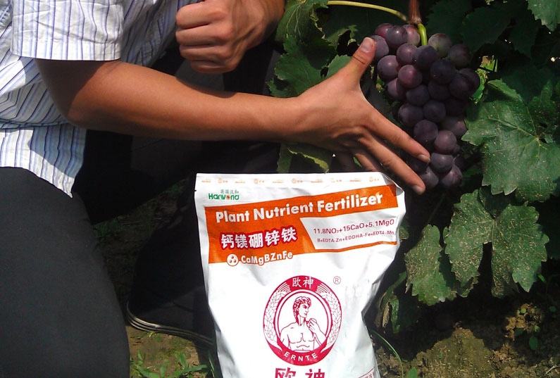 王夕軍是青島平度市門村鎮曲家莊村一位普普通通的農民,今年58歲,已經種了28年的葡萄了,現在擁有一個將近10畝的葡萄園。這些年來,雖然葡萄產量很好,但有幾個問題一直困擾著王夕軍,葡萄根系弱小,后期吸收營養困難,常常裂果情況很嚴重,再就是葡萄的品質并沒有隨著產量的提高而提高,這些問題一直困擾王師傅。當地客戶技術人員去葡萄園看了一圈后找到了原因,原來是王夕軍施肥時只注重氮磷鉀的使用,而忽略了微量元素的使用,導致了葡萄因缺少微量元素而抵抗力下降,這才出現根系弱小、大片裂果和葡萄的口感不好情況。聽了技術員的指導后,他就到村里、鎮上到處去找“微量元素”,雖然也找到了一些微量元素肥,但使用后效果還是不明顯,裂果依然很嚴重。在一次和朋友聊天中,他偶然聽到鎮上有一家農資超市賣一種英國進口的中微量元素肥,上海漢和公司全國總代理。剛開始,半信半疑,抱著試試看的態度買了規格為2包2公斤規格歐神鈣鎂硼鋅鐵,在春季施用底肥的時候就拿出了一畝地做了個實驗。9月屬于葡萄收獲的季節,他拉著我們的手說:“你們那個歐神鈣鎂硼鋅鐵中微量元素肥料太神奇了,這一季葡萄根系非常發達,大量中微量元素促進了根系分支,營養吸收充分,葡萄不僅僅沒裂果,而且口感非常好,到市場賣價比一般都貴不少”。