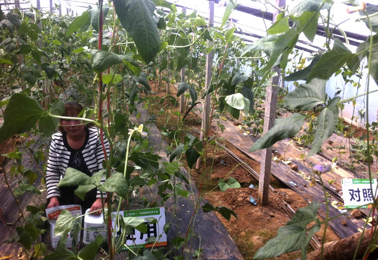 圖2.使用歐神微根露+歐神美加健的豆角提前開花結(jié)莢,葉色厚綠有光澤。