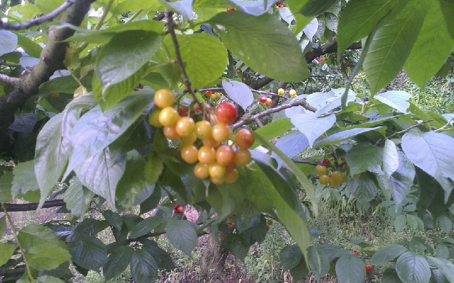 圖1. 施用(歐神微果露1000倍液2次+歐神歐護(hù)1000倍液2次)的櫻桃果實(shí)提前5-7天成熟,果實(shí)色澤紅潤(rùn)有光澤,裂果減少。