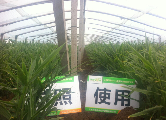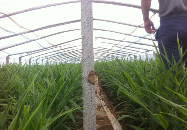 示范試驗情況介紹:試驗時姜苗高約20厘米,大棚姜,對其做微根露和歐神水溶肥的實驗,并留出對比田。準備繼續實驗后期用高鉀水溶肥,然后測產。
