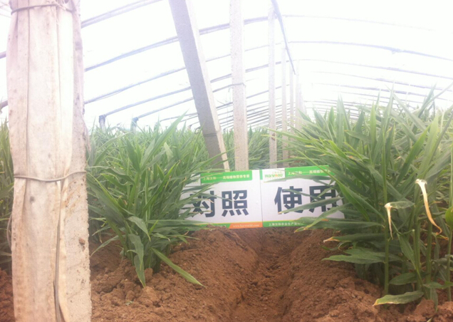 第一次查看實驗效果整體對比(隔10天)實驗區長勢比對比區好。
