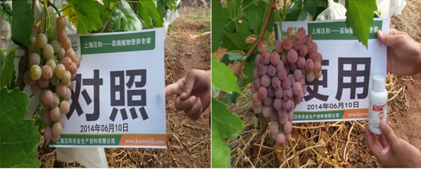 肥效優劣標準:農戶對著色肥料肥效的評定標準為:葡萄上色快,上色均勻,果粉好,不出現裂果腐果,并且不影響第二年的產量。