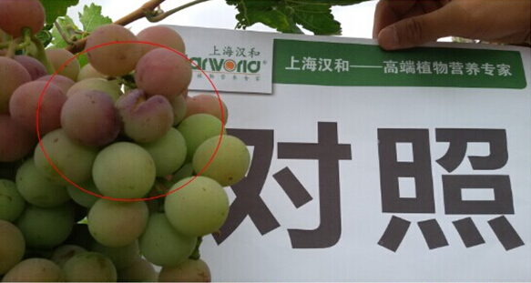 肥效優劣標準:農戶對該時期肥料肥效的評定標準為:葡萄上色快,果粉好,不出現裂果腐果,葉片顏色濃綠,并且不影響第二年的產量。