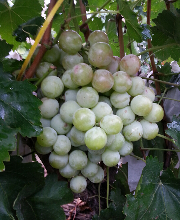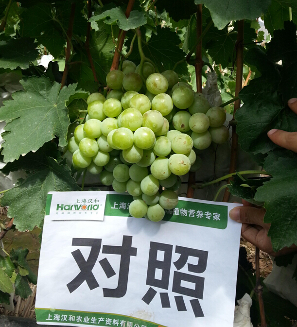 對(duì)照田試驗(yàn)效果:對(duì)照的葡萄上色相對(duì)較慢,還是很青的顏