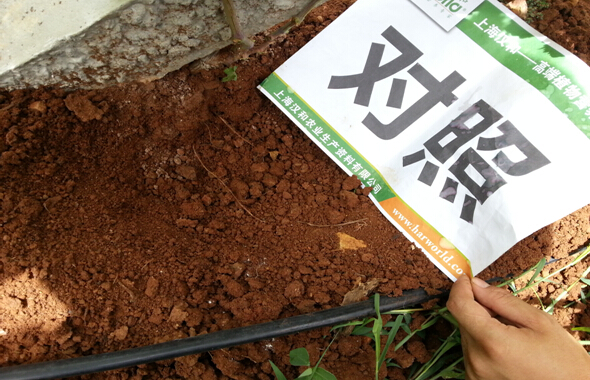 對照田效果:根系不發(fā)達(dá),須根數(shù)很少,各根都比較細(xì)、短。葉片淺綠偏泛黃、較薄,還沒有新稍長出。