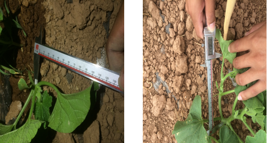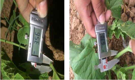 使用組的甜瓜苗,莖稈粗度為6.30mm;對照組的甜瓜苗,莖稈粗度為6.10mm。說明微根露在促進作物提苗,健壯植株長勢上作用突出。