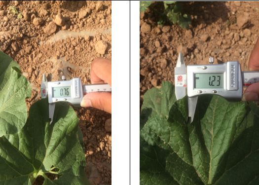 (左邊對照區:0.76mm;右邊試驗區:1.23mm)