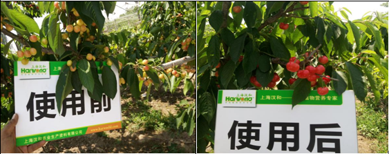 效果說明:相比對照,試驗區:櫻桃果實色澤紅潤,著色均勻。