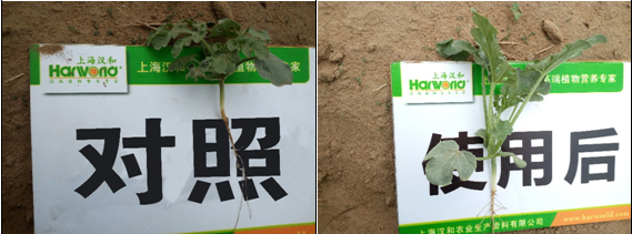 效果說(shuō)明:在瓜苗受到除草劑危害的情況下,歐神微根露促進(jìn)作物生根提苗,使用后4天西瓜開(kāi)始長(zhǎng)新根,8天時(shí)根數(shù)更多,苗子也更健壯。