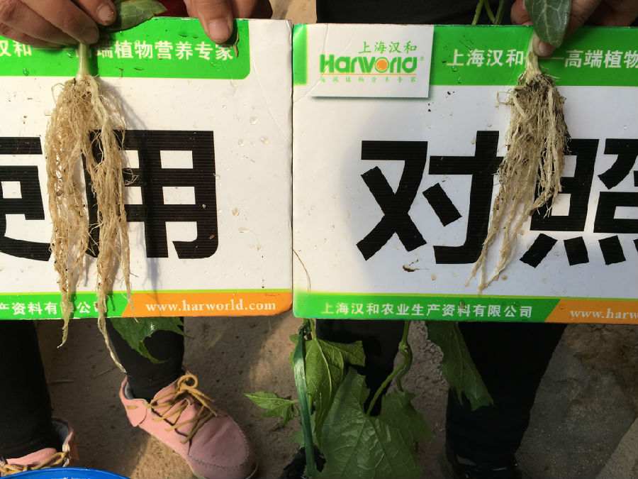 1、促進(jìn)根系生長,使絲瓜根系發(fā)達(dá),明顯比對照的粗壯,數(shù)量多。
